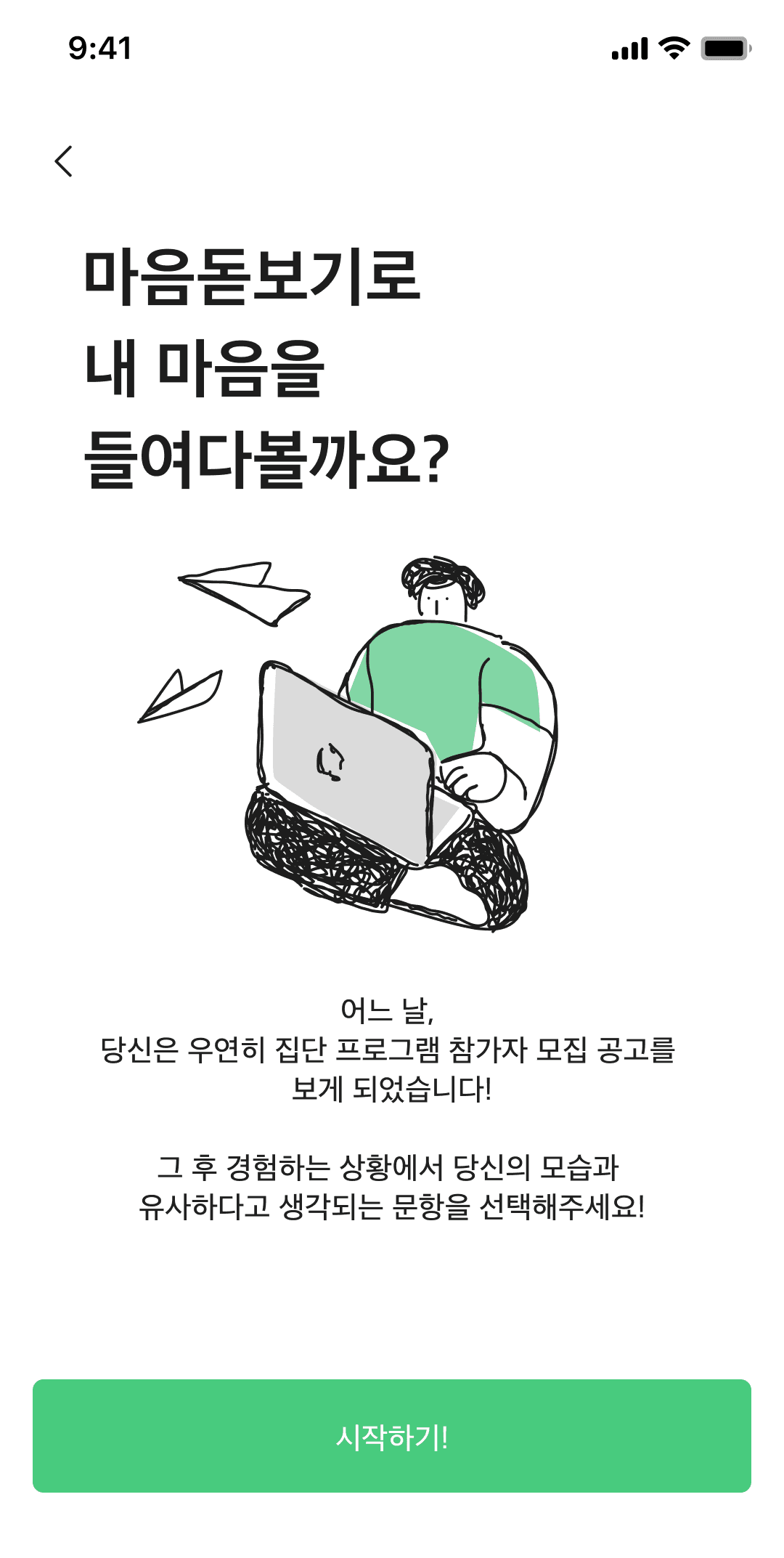 자가 진단부터 전문가 챗봇 상담, 오프라인 소모임 연결까지 아우르는 확장형 헬스케어 플랫폼.