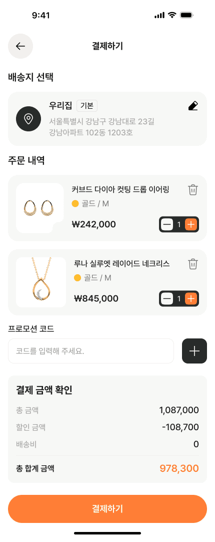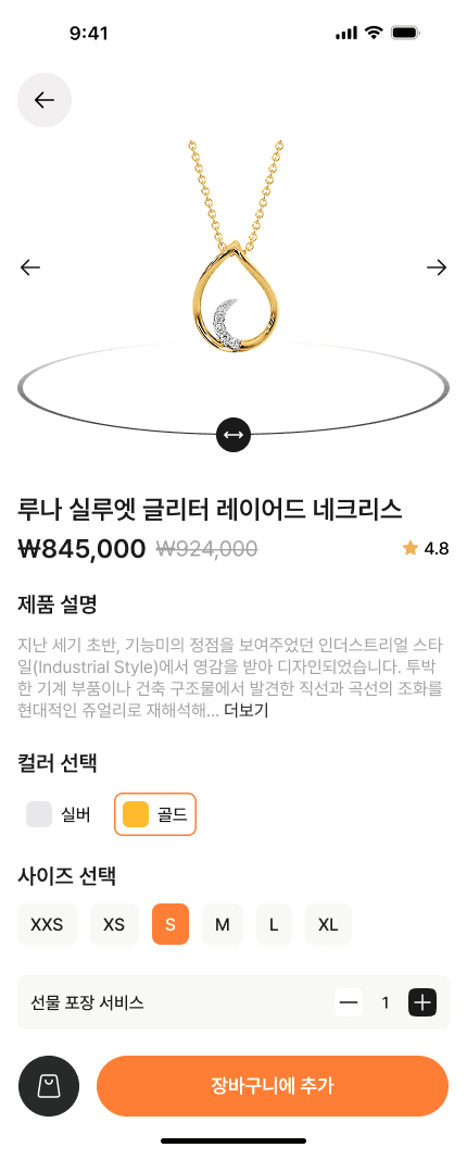 상품 선택부터 결제까지의 과정을 최소 단계로 구성하여 이탈률 감소