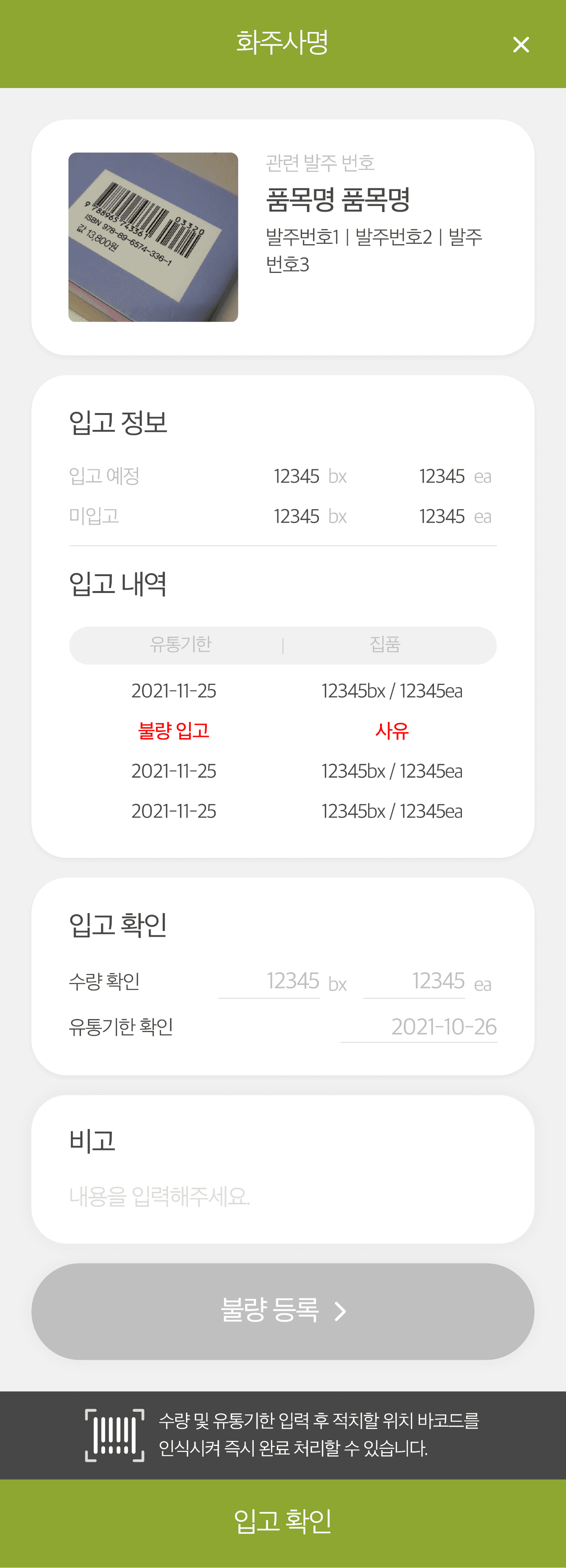바코드/QR 기반 입·출고 처리와 실시간 데이터 반영을 통해 재고 정확도를 확보