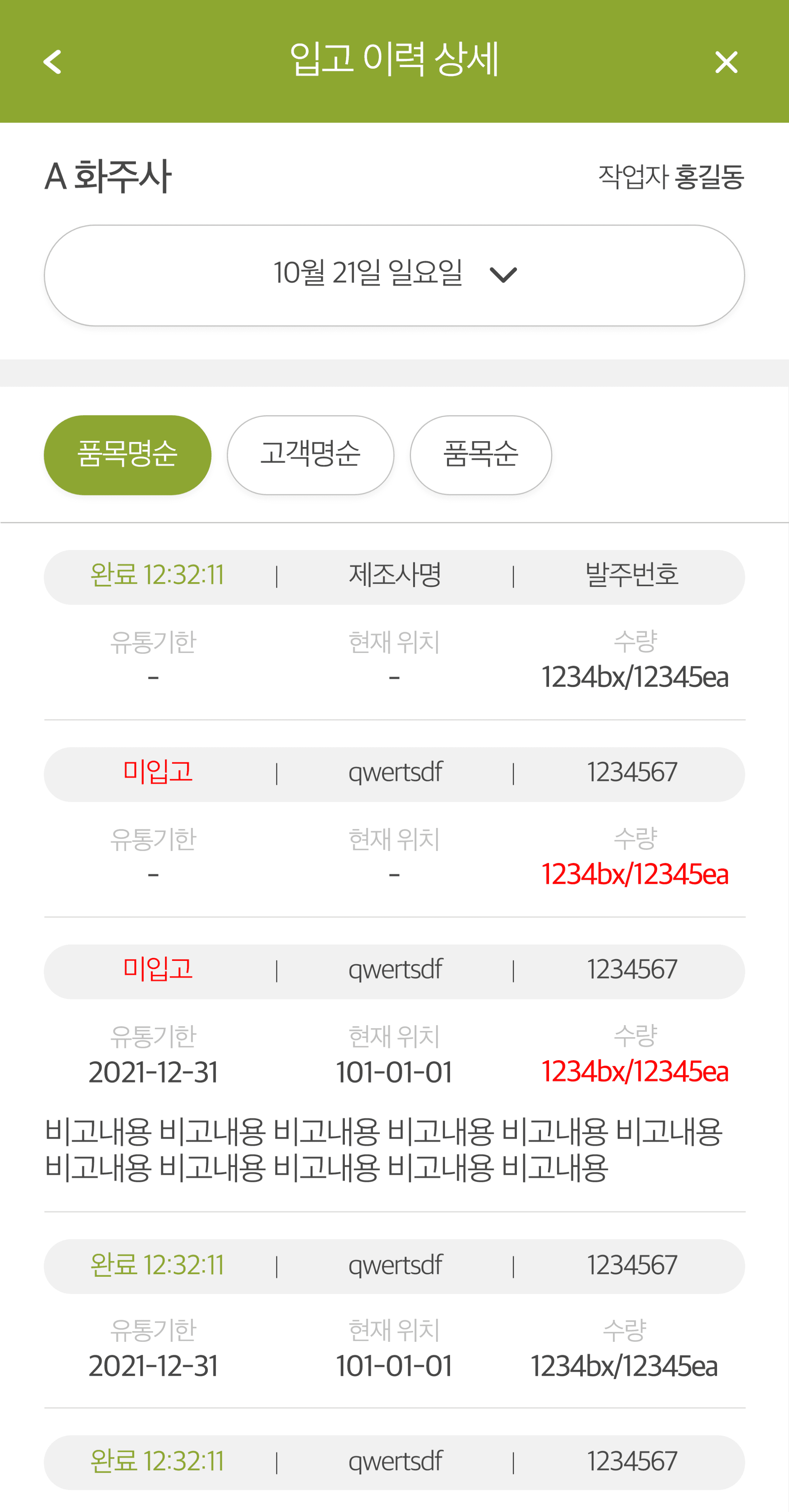 제품 정보 및 위치 데이터를 기반으로 체계적인 재고 관리 지원
