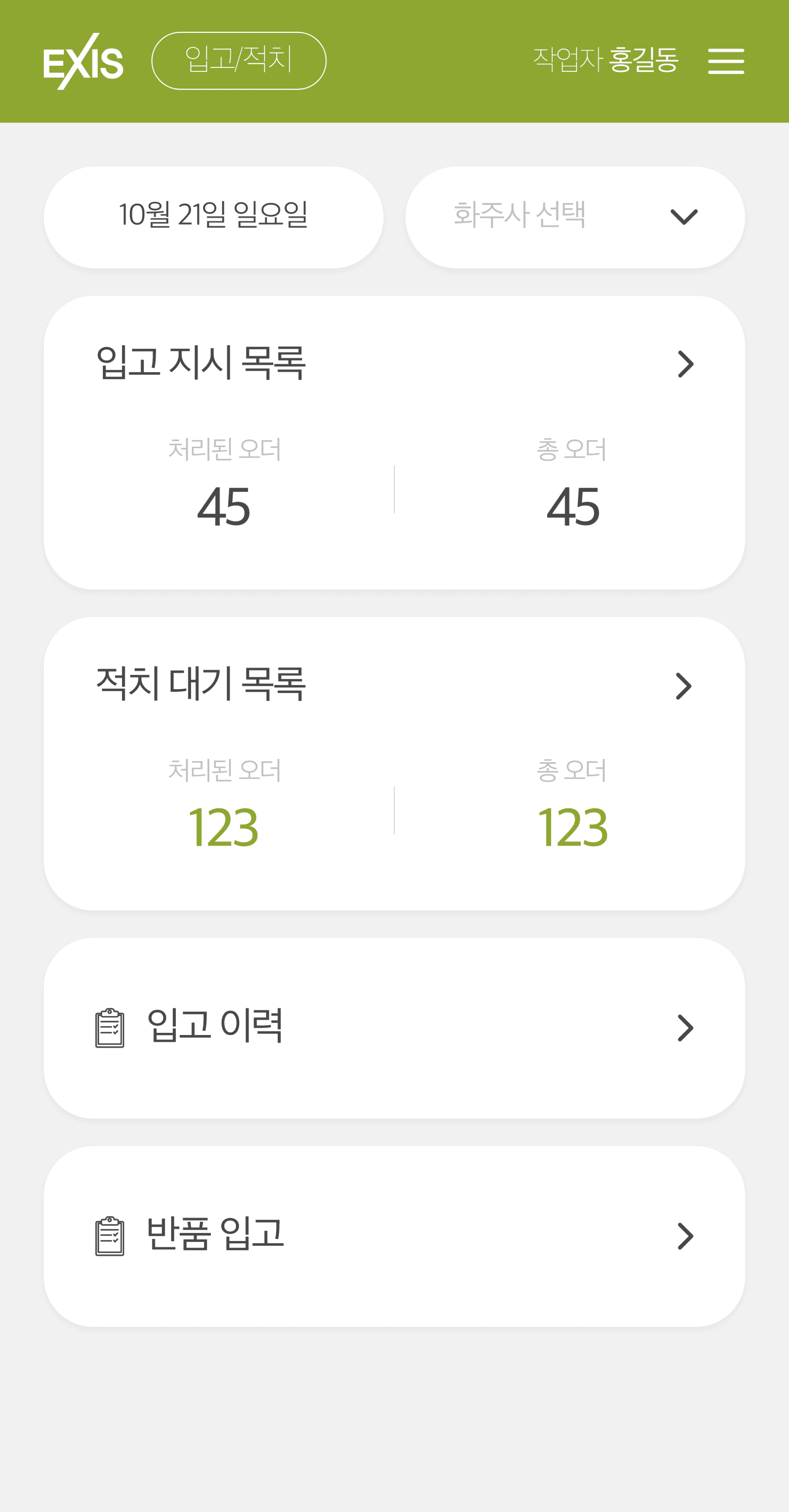 재고 흐름과 작업 프로세스를 실시간으로 관리하는 데이터 기반 물류 운영 플랫폼입니다. 입·출고 처리, 재고 현황, 작업자 업무 진행 상태를 하나의 시스템에서 관리하여 창고 운영 정확도와 업무 효율을 높일 수 있도록 설계했습니다.