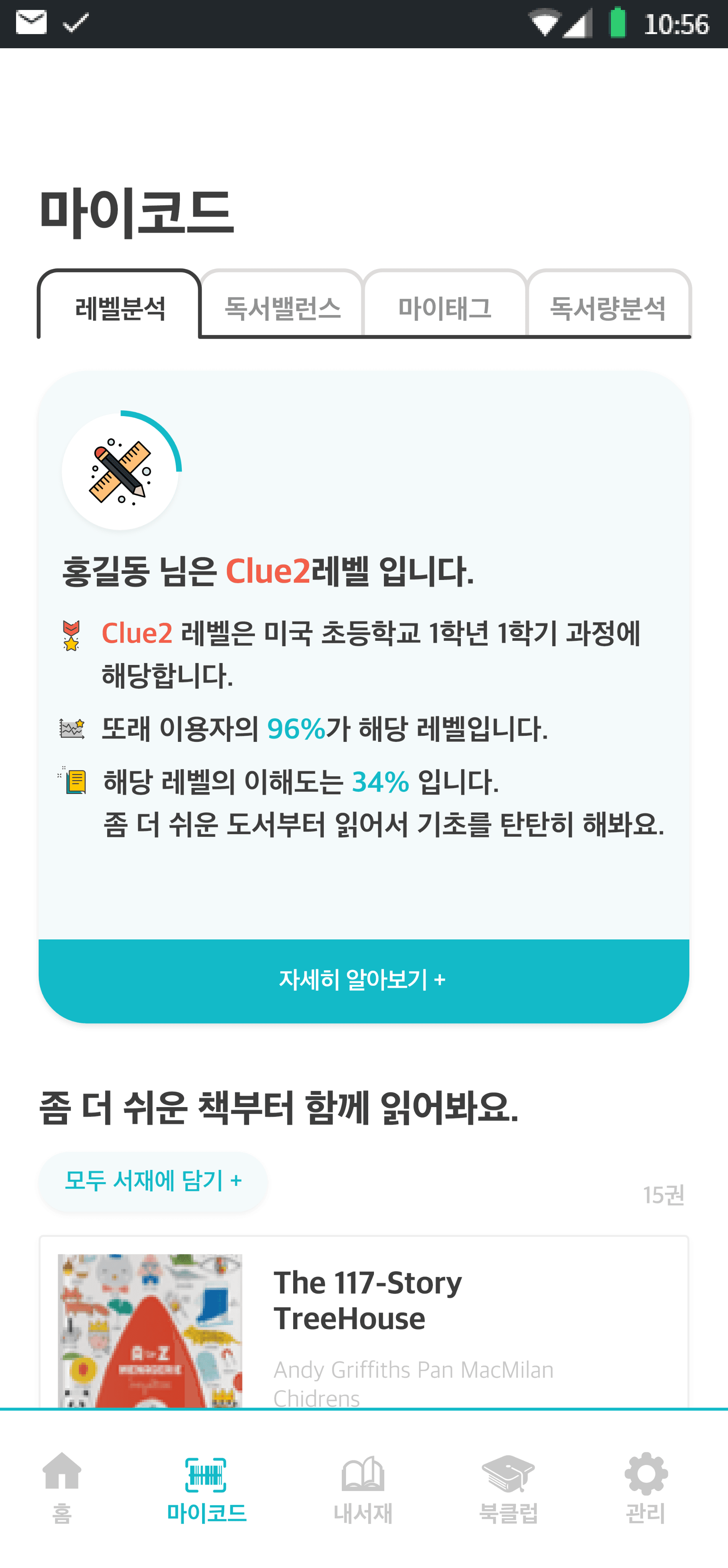 분석된 데이터를 기반으로 아이에게 가장 적합한 원서를 추천