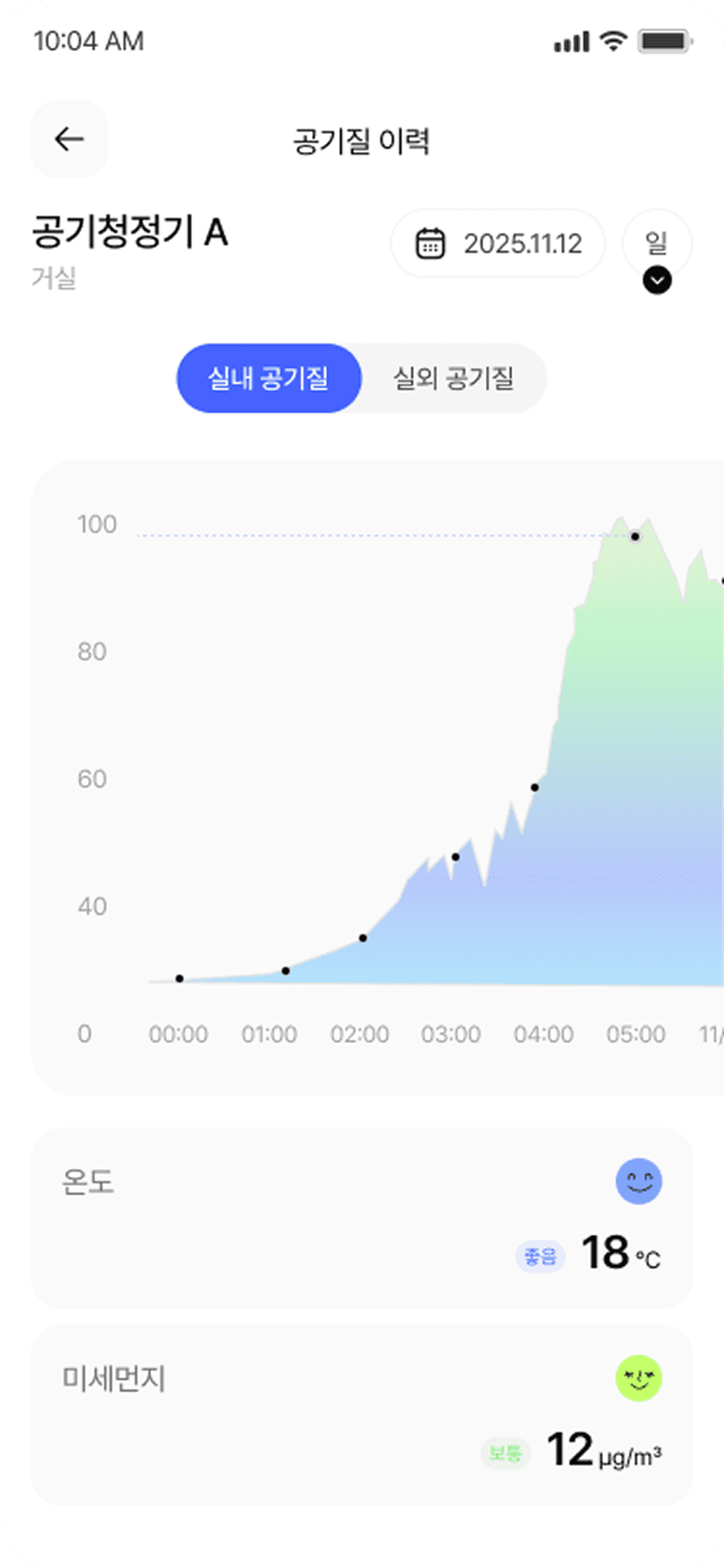 실내 환경 데이터를 기반으로 공기질을 분석·제어하는 IoT 통합 관리 플랫폼입니다. 공간별 디바이스 관리와 실시간 공기질 모니터링을 통해 사용자가 실내 환경 상태를 직관적으로 확인하고 제어할 수 있도록 설계했습니다.